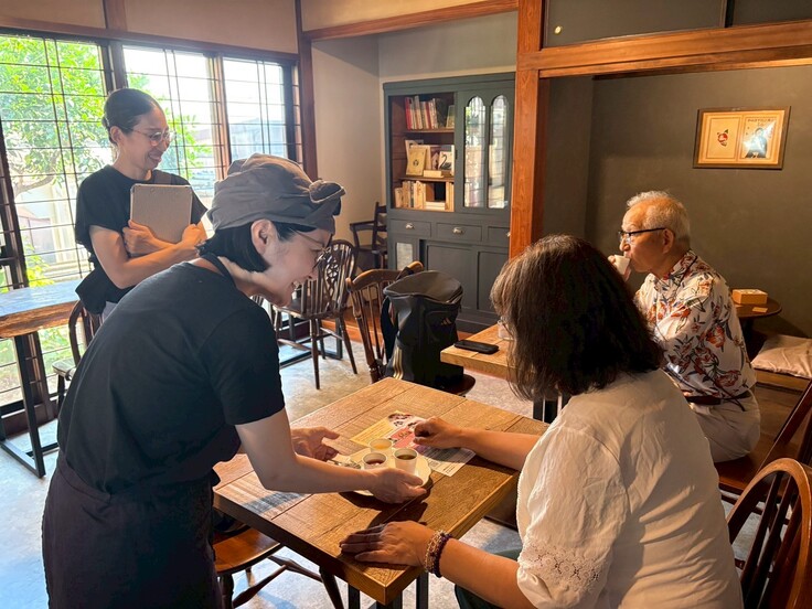 ミーココの中をご案内したり、事業の説明をしたり、喫茶メニューの試飲をしたり。