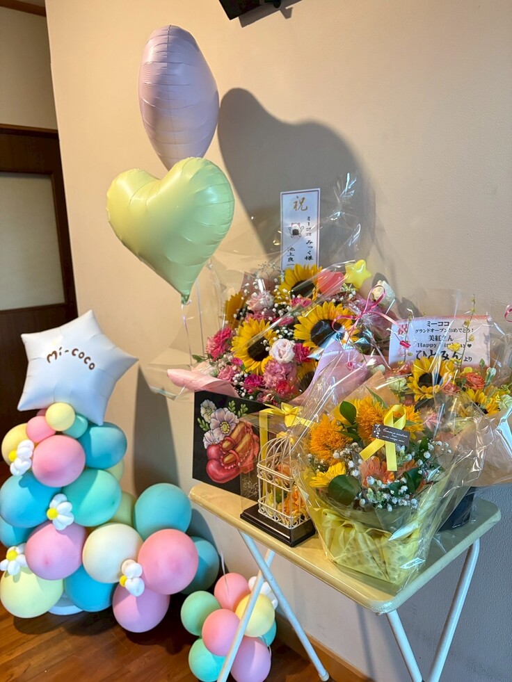 入口には看板もついて、お祝いでいただいたバルーンアートも飾られています。