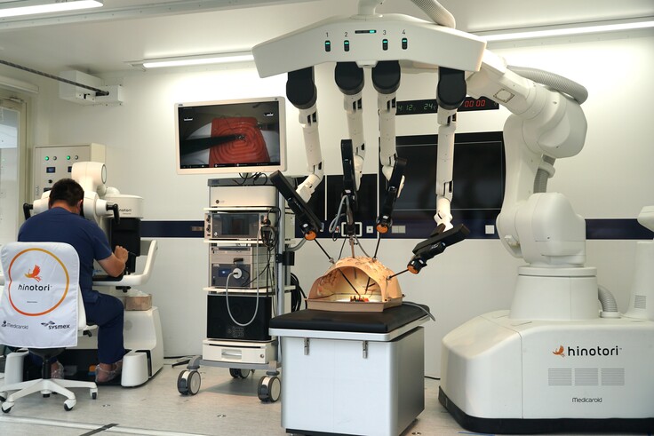 医師やコメディカルスタッフを対象に展示見学会を行い、hinotoriを操作体験しました。