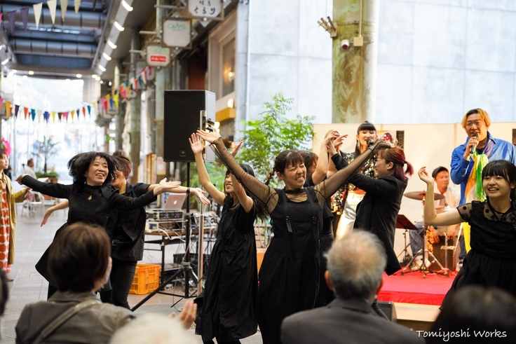「踊ればそこは劇場空間になる」をモットーに、劇場を飛び出し、商店街・映画館・プロレスリングの上・お店の中・島の公民館など、まちのいろんな場所で踊ってきました。