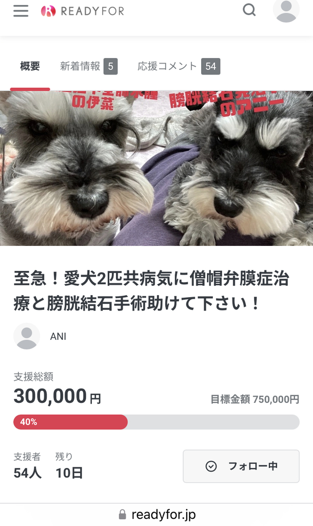 残り60%達成しないと手術費用も治療費用も持ちません。