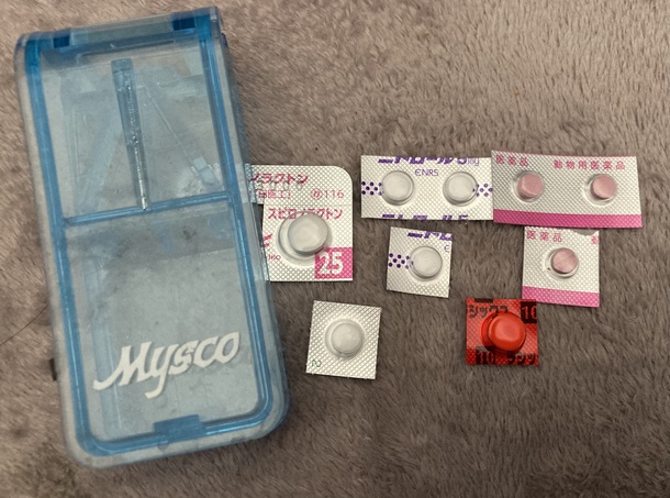 喉の奥に流し込む様に錠剤1と1/2や半錠にしたりして。7個を流し込む様に入れます。