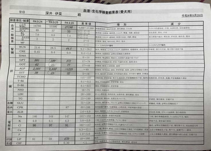 毎回血液検査や、レントゲン、エコー検査そして再診療や薬代等等。
