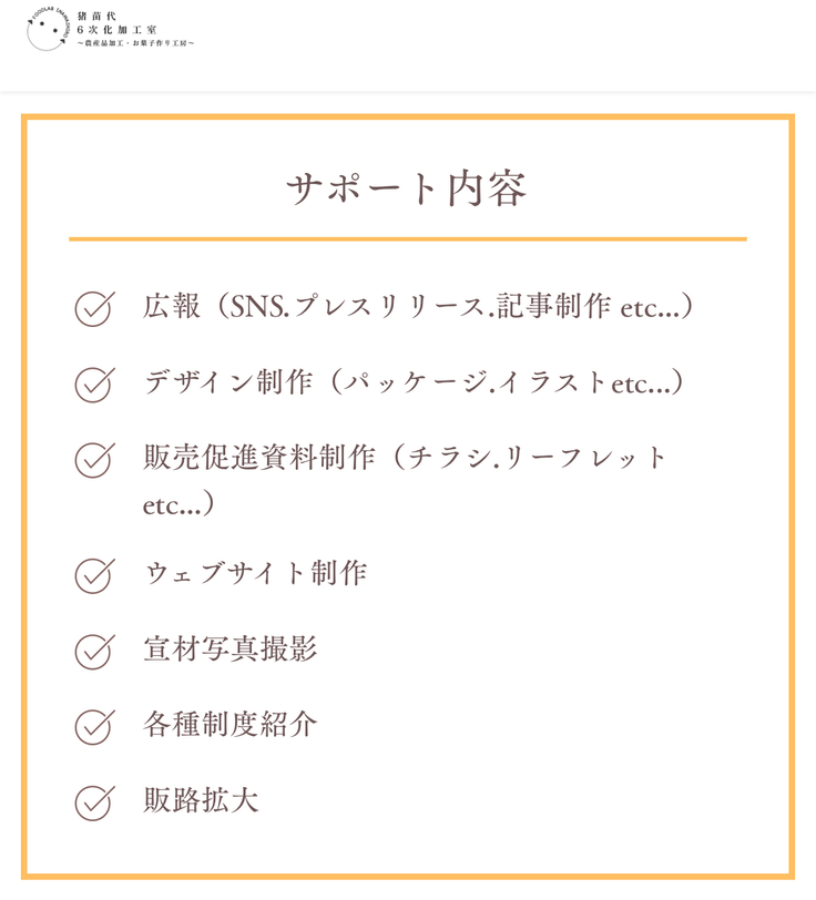 また、商品のパッケージデザインや販促資料の作成、販売サイトの構築、広報活動といった多岐にわたるサポートも行っています👍