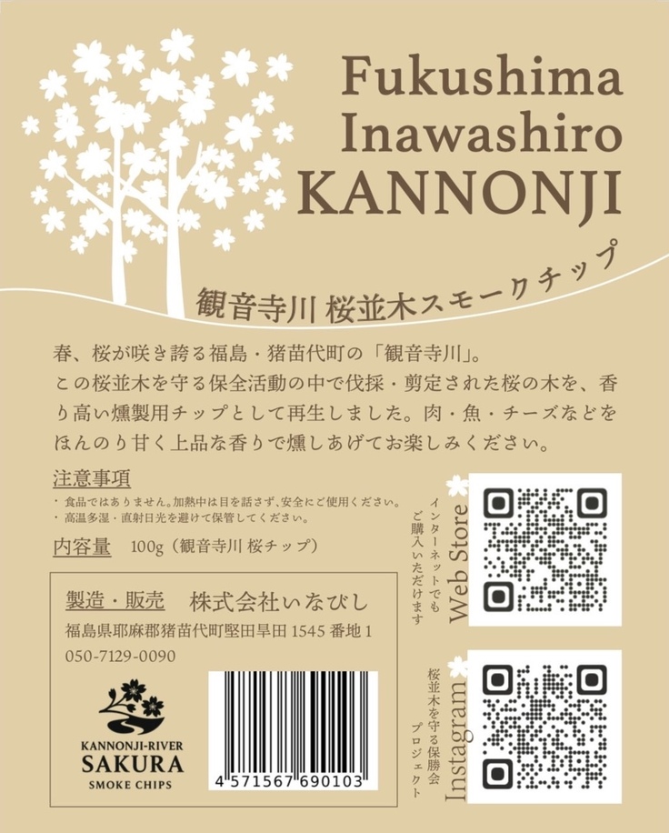 このたび、猪苗代湖に注ぐ清流・観音寺川沿いの桜並木の剪定木を再利用した香り豊かな燻製用の**桜スモークチップ(100g)**が誕生しました!