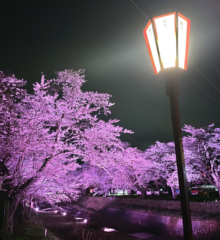 観音寺川は、長瀬川を経て猪苗代湖へと注ぐ水系の一部。その清流沿いには、約1kmにわたる美しい桜並木が広がります。