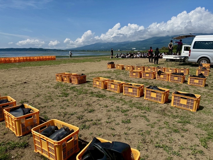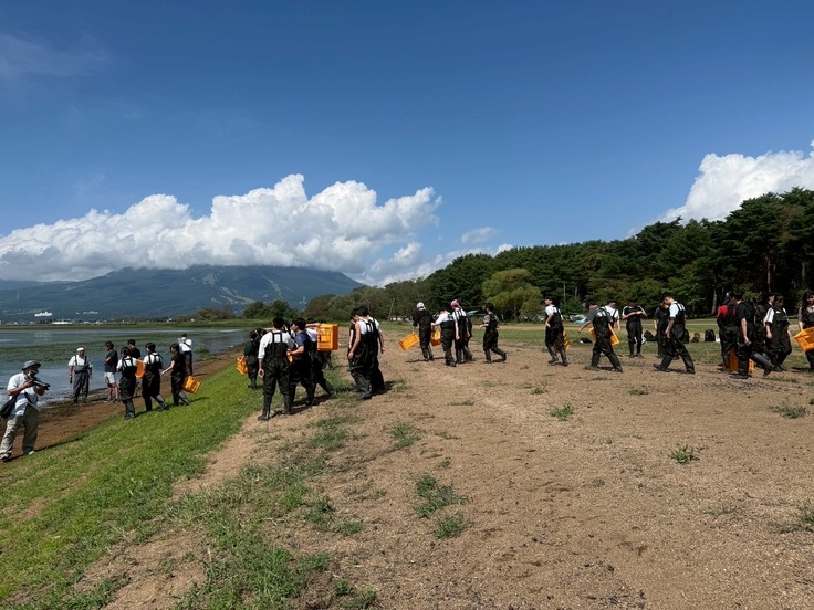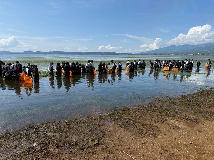 さらに、実際に猪苗代湖で水草回収のフィールドワークを行い、地域課題に直接触れていただきました。