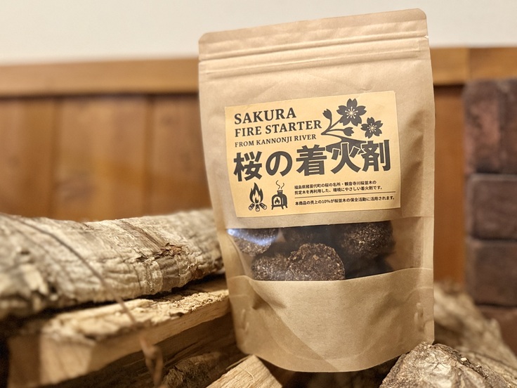 この着火剤の売上の10%は、観音寺川桜並木の保全活動に充てられます。