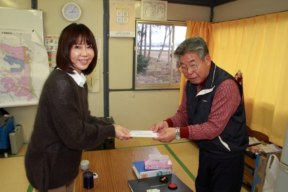 (写真)和田裕美さんから林さんへ寄付が手渡されました