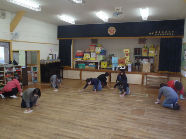 板目にそってたったったぁーと、いなりもりの子どもたちは雑巾がけ名人です!