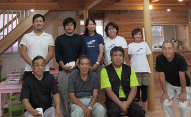 園舎改修に携わってくださった“職人さん方”と先生たちと
