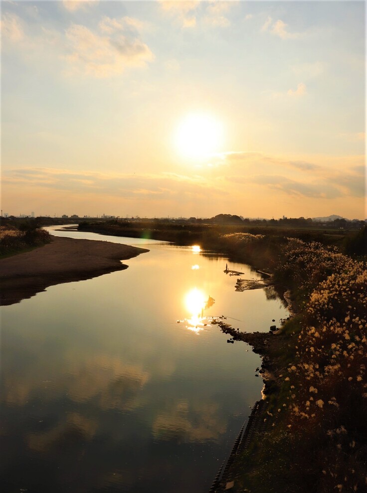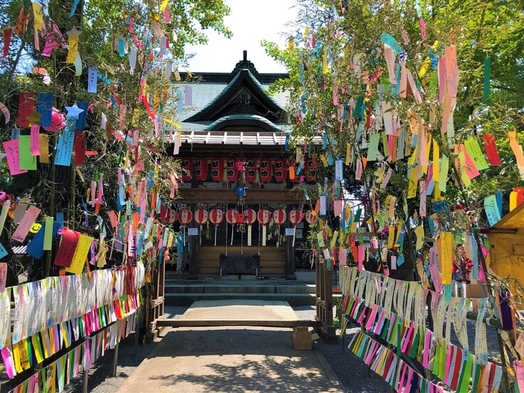 天の川に隔てられた織姫と彦星のように、小郡市を流れる宝満川の対岸に織女神(織姫)をまつる七夕神社と、犬飼さん(彦星)をまつる老松神社があります。