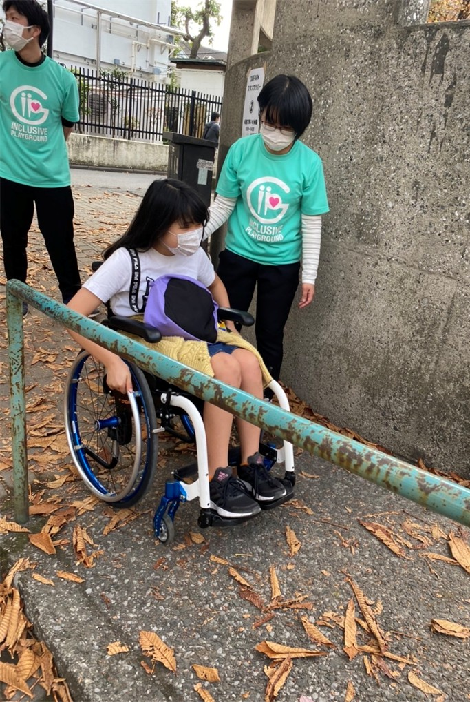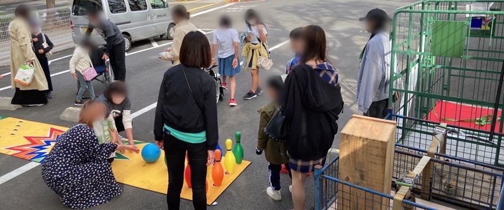 遊びながら多くの人たちに、車いすに乗るのってどんな感じなの?ということを体験してもらいました。