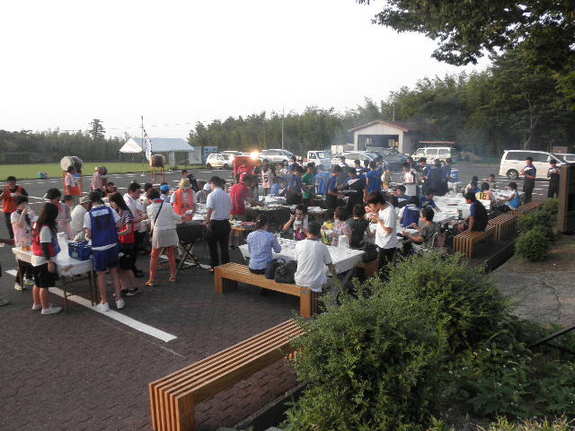 親善試合のほかに、混成チームでミニゲーム、バーベキューなどを行います