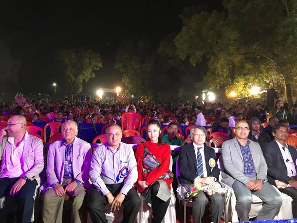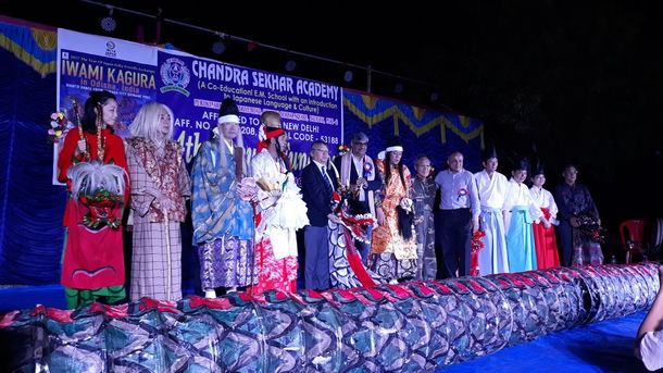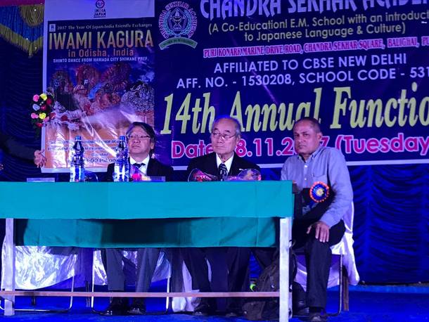そして、11月28日に「チャンドラ・セカール・アカデミー」で開催された島根県、石見神楽インド公演の様子です。在コルカタ日本国総領事の夛賀政幸氏、インド・オディシャ州政府開発長官兼上席首席次官のMr R.Balakrishnan、インド古典舞踊のオディッシーダンスの第一人者である小野雅子氏など、たくさんの著名な方にご来賓として出席いただきました。