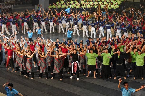 公開演技は、鹿児島の歴史、自然、文化を、地元高校生による創作ダンスや和太鼓、演劇やマーチングなどのパフォーマンスによって表現し、全国から集まる選手団を激励しました。