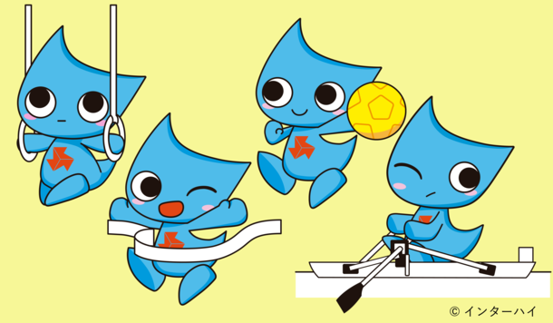 ▲体操、陸上競技、ハンドボール、ボートを行うインターハイマスコットキャラクター「ウイニンくん」