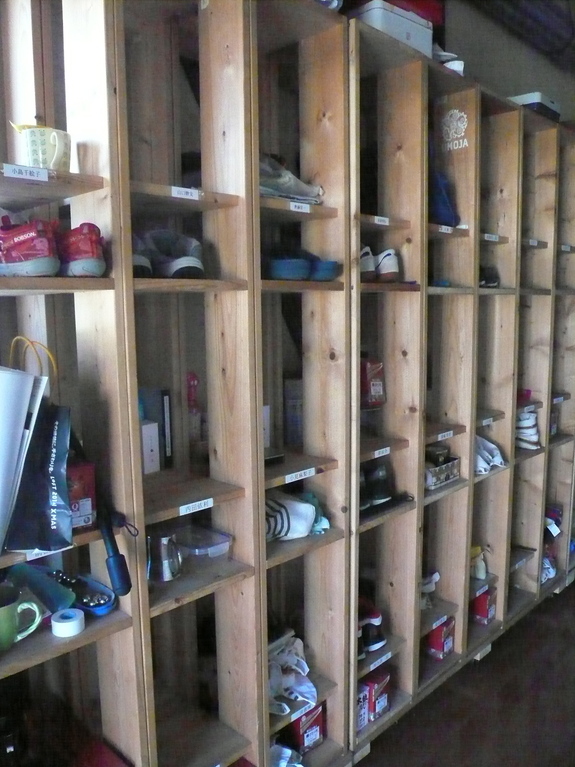 鼓童村の稽古場でもバチ置きや各自のロッカーなどに、アースファニチャーを使っています。