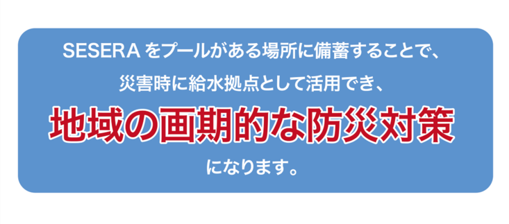 ●電源不要で使用できる浄水器SESERAをプールのある施設に備蓄
