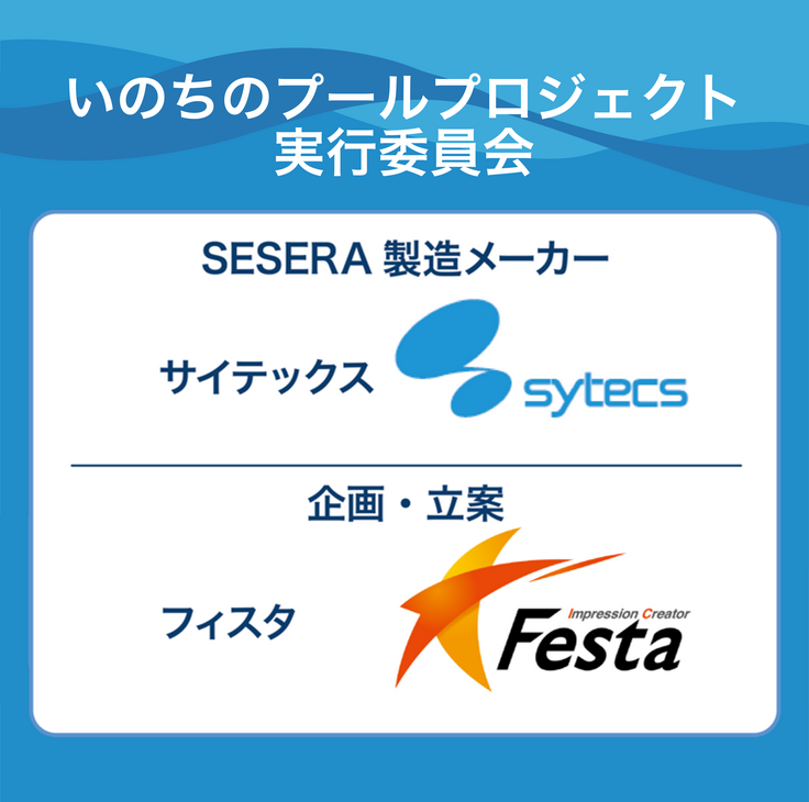 この教訓から、災害時に飲み水に困る人をなくしたいという想いで、SESERA製造メーカーの株式会社サイテックスと共同でいのちのプールプロジェクト実行委員会を立ち上げ、本プロジェクトをスタートしました。