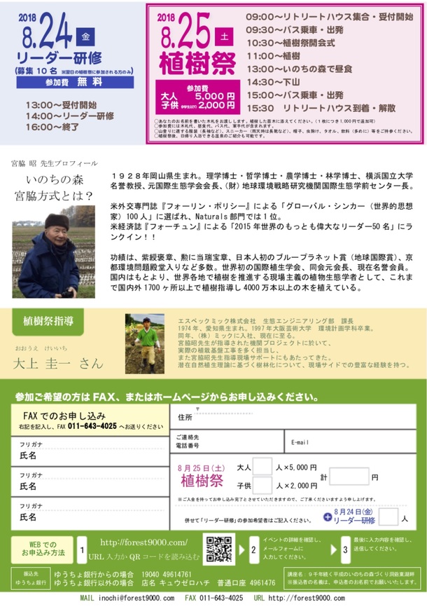 なお、8月25日(土)は植樹祭を開催いたします。