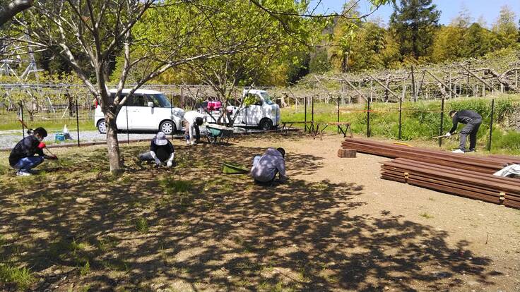 今日は作業日を設け、スタッフと共にお手伝いにきてくださった里親をはじめご協力の皆様と一緒にまずは土が露出しているドッグランの草むしり。