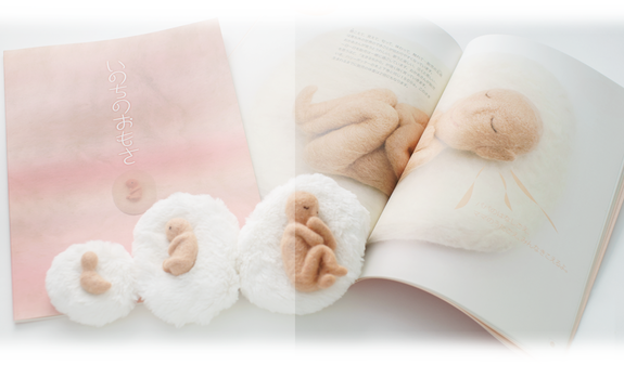 胎児人形が実物大で印刷されている写真絵本です。