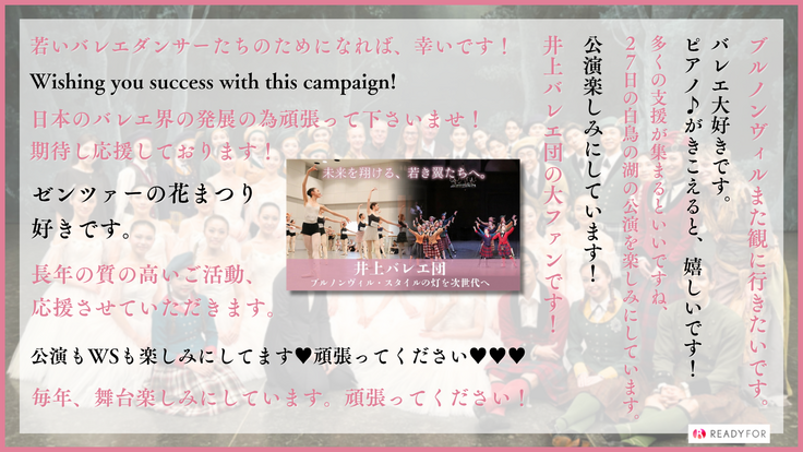 皆さま、井上バレエ団のクラウドファンディングにご関心をお寄せいただき、誠にありがとうございます。