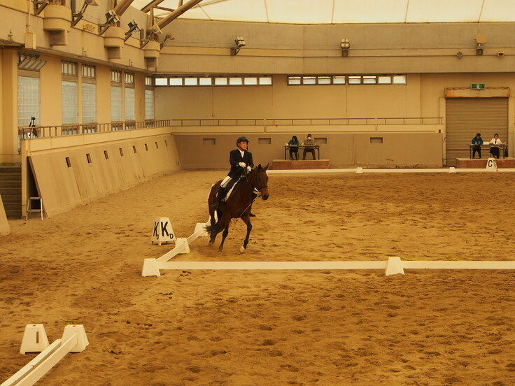 昨年8月に佐賀競馬から引き取ったマカロンが馬場馬術競技会に出場できました。