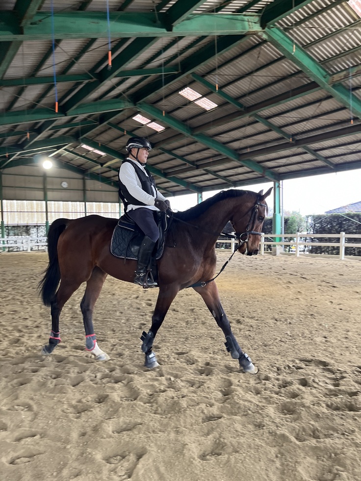 昨年末に現役競走馬を引退したばかりですので今は体力作りと筋力の強化、脚の指示に対する理解力など基本的なことを教えています。