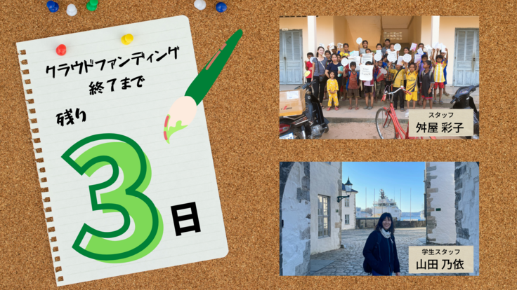 残り3日、されど3日、ここからネクストゴールの達成に向けて、さらに盛り上げていきたいと思います!