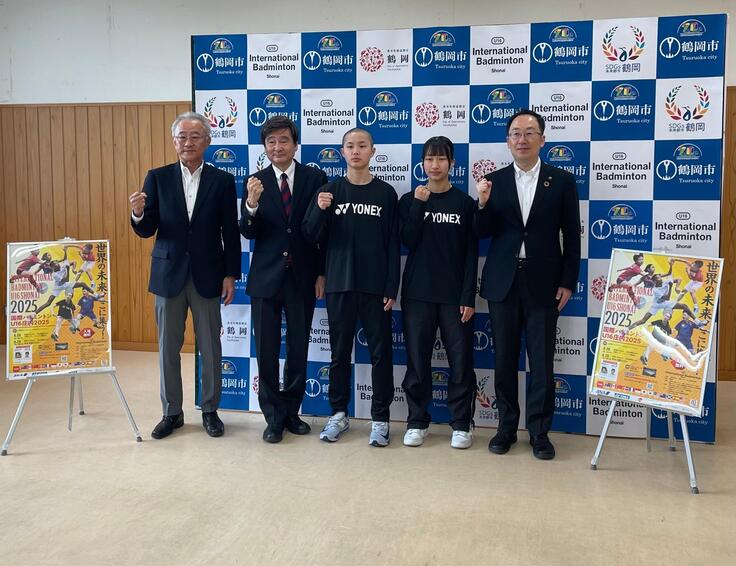 本日午前10時より、鶴岡市朝暘武道館にて「国際バドミントンU16庄内2025」の記者会見が開催されました。大会会長である皆川治・鶴岡市長からは、「中学生世代の世界最高峰の精鋭が集い、地方が世界と直接つながるこの大会を、ぜひ多くの方に会場で体感してほしい」と力強いメッセージをいただきました。
