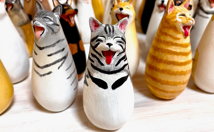 応援団HPの犬猫小法師ギャラリーからどんなものかご覧いただけます(https://www.inuneko-ohyendan.com/koboshi)