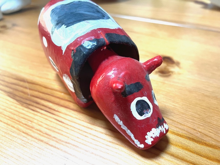 会津で有名な赤べこ(小学生の頃に息子が色付した赤べこ)
