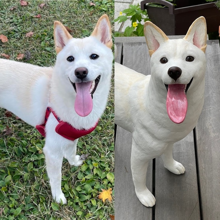 何点かの画像を参考にさせていただき製作致します。ハーネスを取ったり着けたり、服を着せたりなど、ご自由です。原寸大の場合は本物の服やハーネス、首輪などがお勧めです。