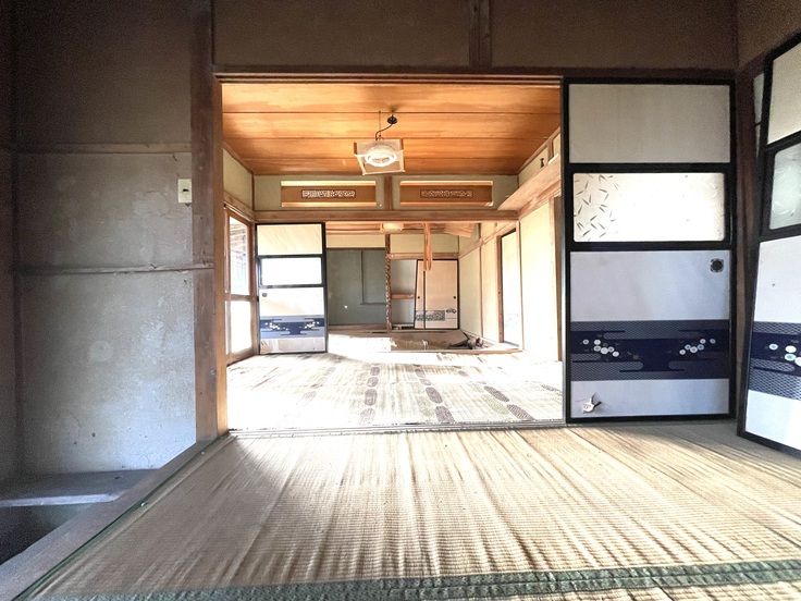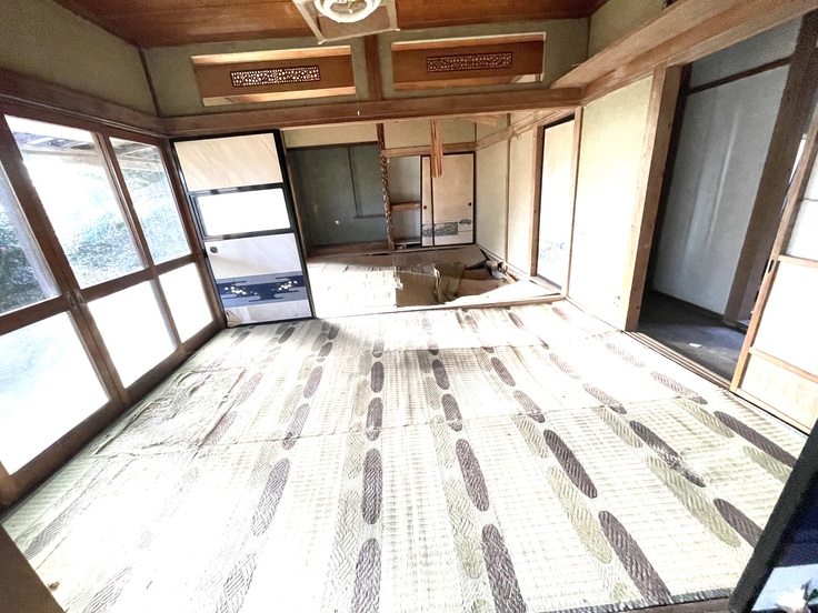 劣化が酷いですが、床の下地と床をやり直し、壁を一部取り払って一間に改装します。
