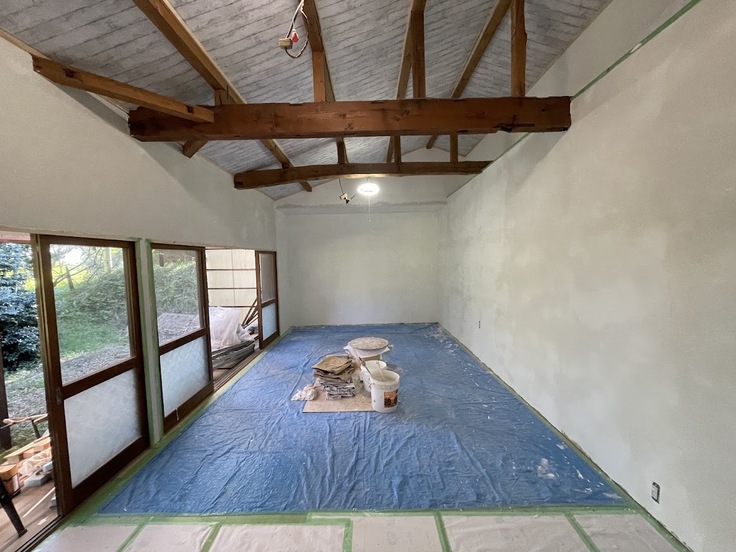 予定では残り壁用漆喰が7日に到着し、9日に壁完了、床面の仕上げ、巾木の取付、建具を障子から網戸に変更を予定1週間となります。その後、猫の収容となりますが、リターンの施設ビデオ製作など含め6月1日のご報告完了とさせていただけますように何卒お願い申し上げます。