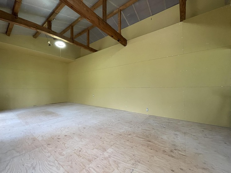 16帖の猫部屋、漆喰壁が3面塗り終わりました。床は当初、木の無垢材を考えておりましたが、人工芝にする予定です。キャットスペース的に北側の小ロフト、最大で4m近い天井高さが取れましたので、キャットツリーやハシゴ、吊り橋などを設置し立体的に活用していきたいと思います。また、屋外の空気を感じてもらうために、右側のスペースを囲って、出れるように考えています。