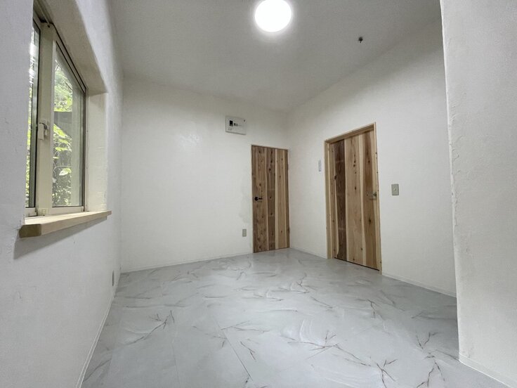 こちらも、床天井には高性能断熱材、そしてペアガラスの樹脂サッシを、壁天井には漆喰を採用。床もメンテナンスを考え、抗菌仕様の樹脂タイル。猫のシャンプーやグルーミングが可能なシンクやテーブルの設置を予定しております。