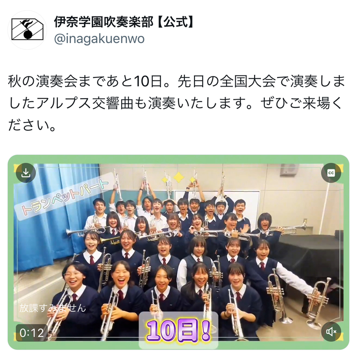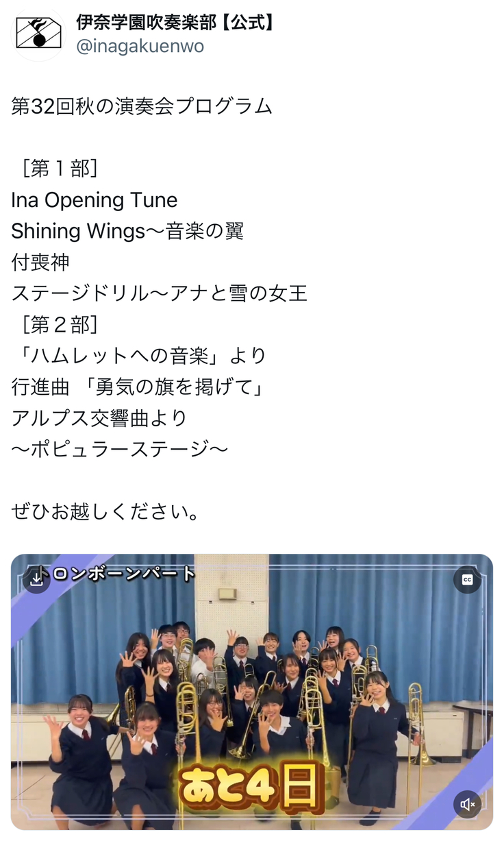 関わっております、伊奈学園吹奏楽部の