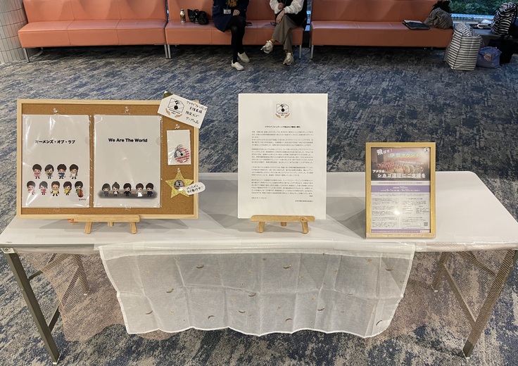 また、リターン品であるファイルやキーホルダーが完成したため、併せて展示もいたしました。