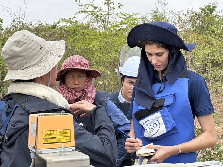 さて昨日、HALO Trust(ヘイロー・トラスト)がDMRチームの現場に来てくれました。HALO Trustは世界30ヵ国で地雷除去活動を行う大きな国際NGOで、所属する地雷除去作業者は1万人に上ります。写真の女性のリディアさんはHALO Trustの研究開発部門に所属し、新しい地雷除去技術の調査・研究をしています。DMRを見るため、カンボジアの現場まで足を運んでくれました。
