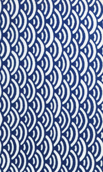 波を扇状の形に描き表す幾何学模様で、どこまでも広がる大海原に絶えず繰り返される穏やかな波のように、平穏な暮らしがいつまでも続くようにという願いが込められている吉祥文様です。