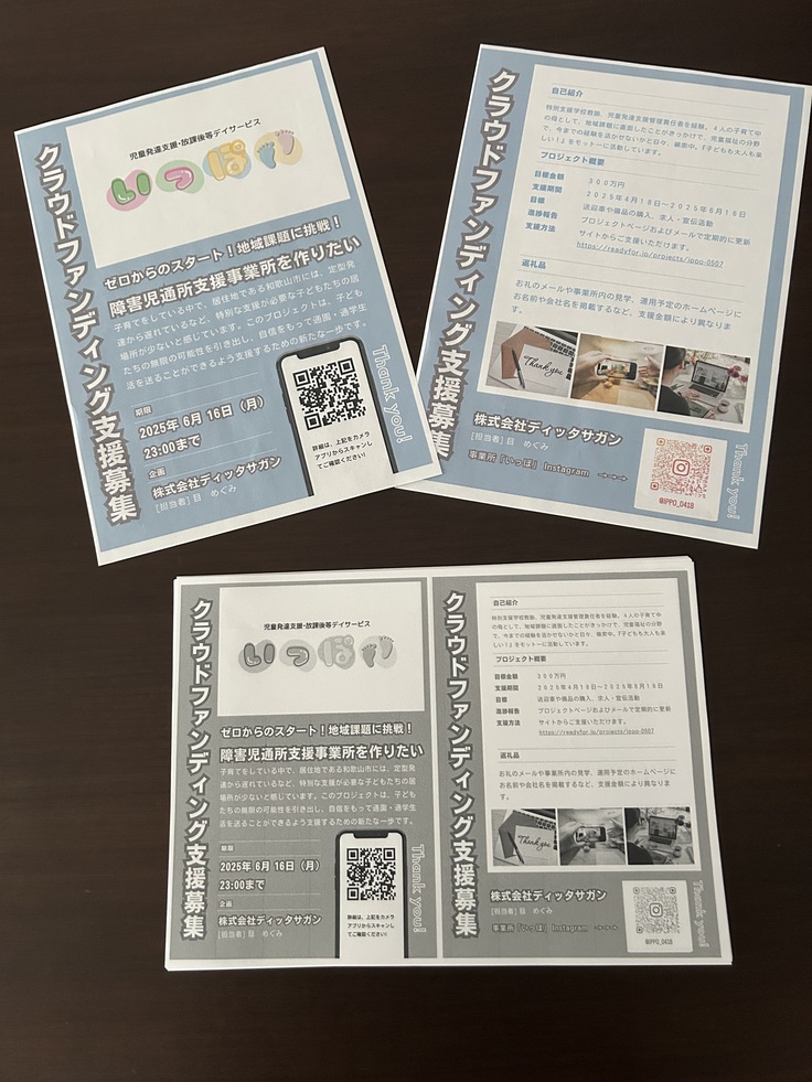 より多くの方に、知っていただけるよう、クラファン支援募集のチラシを作成しました😃