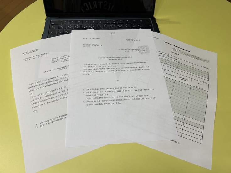 補助金の採択者に選出されました!!
