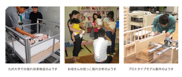 私は約18年間「育児支援のための揺動ベビーベッド」の研究に取り組んでいます。研究資金は私の努力で獲得(文部科学省の科学研究費補助金)できますが、製品開発~製造~販売・レンタルについては企業様の助けを借りなければなりません。