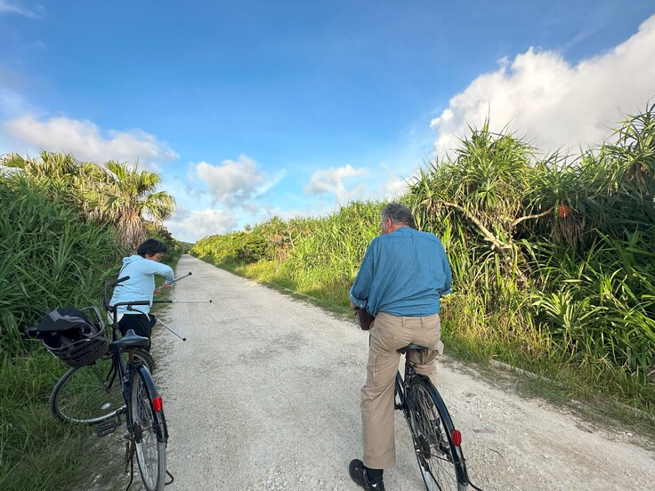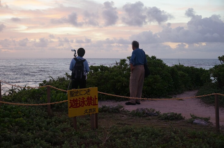 6月下旬に数日間にわたり、岡田一男(プロデューサー/監督)、鈴木由紀(監督)、三島まき(学術指導/文化財映像研究会)が久高島で事前調査を実施しました。9月からの撮影を前にして、島の方々と話し合いと連絡調整を行うとともに、現地の様子を下見するのが目的でした。