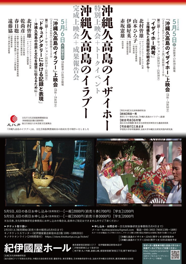・『沖縄久高島のイザイホー』特別上映会・トークイベント(5/5)および『沖縄久高島のイラブー』完成上映会・報告会(5/6)へのご招待