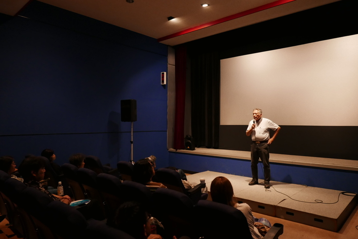 本編上映後、岡田一男監督による舞台挨拶がありました。会場からも多くの質問があり、みなさまの関心の高さがうかがえました。舞台挨拶は明日(10月6日)にもあります。