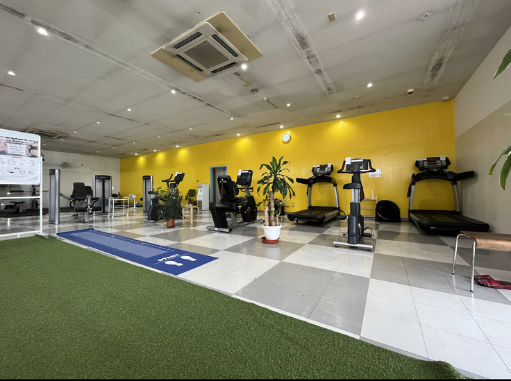 利用者さんがトレーニング中でしたので、この角度でしか撮影できませんでしたが、あと半分以上スペースがあります。広々としたトレーニングルームで皆さん伸び伸びと運動をされていました。